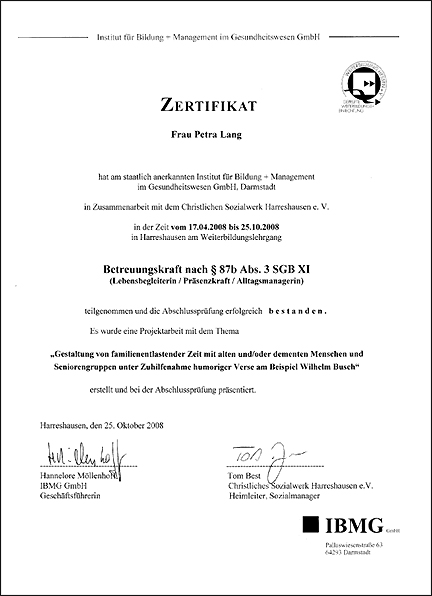 Zertifikat Betreuungskraft